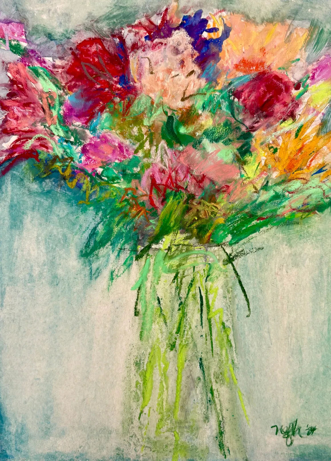 I have been painting and exhibiting my artwork for over twenty years. I experiment with mixing materials, such as, pencil with thinner, or soft pastels with oil paint, layering media to create painted collages with varying surfaces. Fabrics may be integrated to provide a sense of place. I enjoy working in dry and wet media. I develop a painting as I would when choreographing a dance, one element moving into the next. A line begins, takes shape into mass, which will deepen with color, and then culminates into an expressionistic, impressionistic experience. I know sorrow, debilitating pain, fear and every emotion that is positive and in between. I develop paintings of motion to evoke emotion.