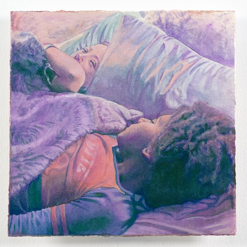Henderson’s gouache portraits are painted with keen attention to detail and saturated color palettes, often imbued with notions of identity and collectivity. “Sleepover,” the series of Henderson's selected for Art on Paper is inspired by her daily life as the mother of an adolescent daughter, capturing the interests and tender moments of girlhood - summertime ice creams by the pool, backstage nerves at a ballet recital, under-cover giggles at a sleepover, and more. Her works are small, calling upon the viewer to look closely at each work.
