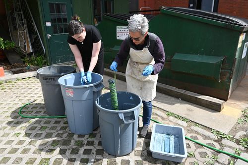 On Earth Day 2023, InLiquid, The Fabric Workshop and Museum, and Marafiki Arts presented a free Natural Dye Workshop for participants to try out techniques to repurpose, upcycle, and transform their existing textiles. Participants learned the history and basic process of natural, organic indigo dying and had a chance to try it out for themselves.