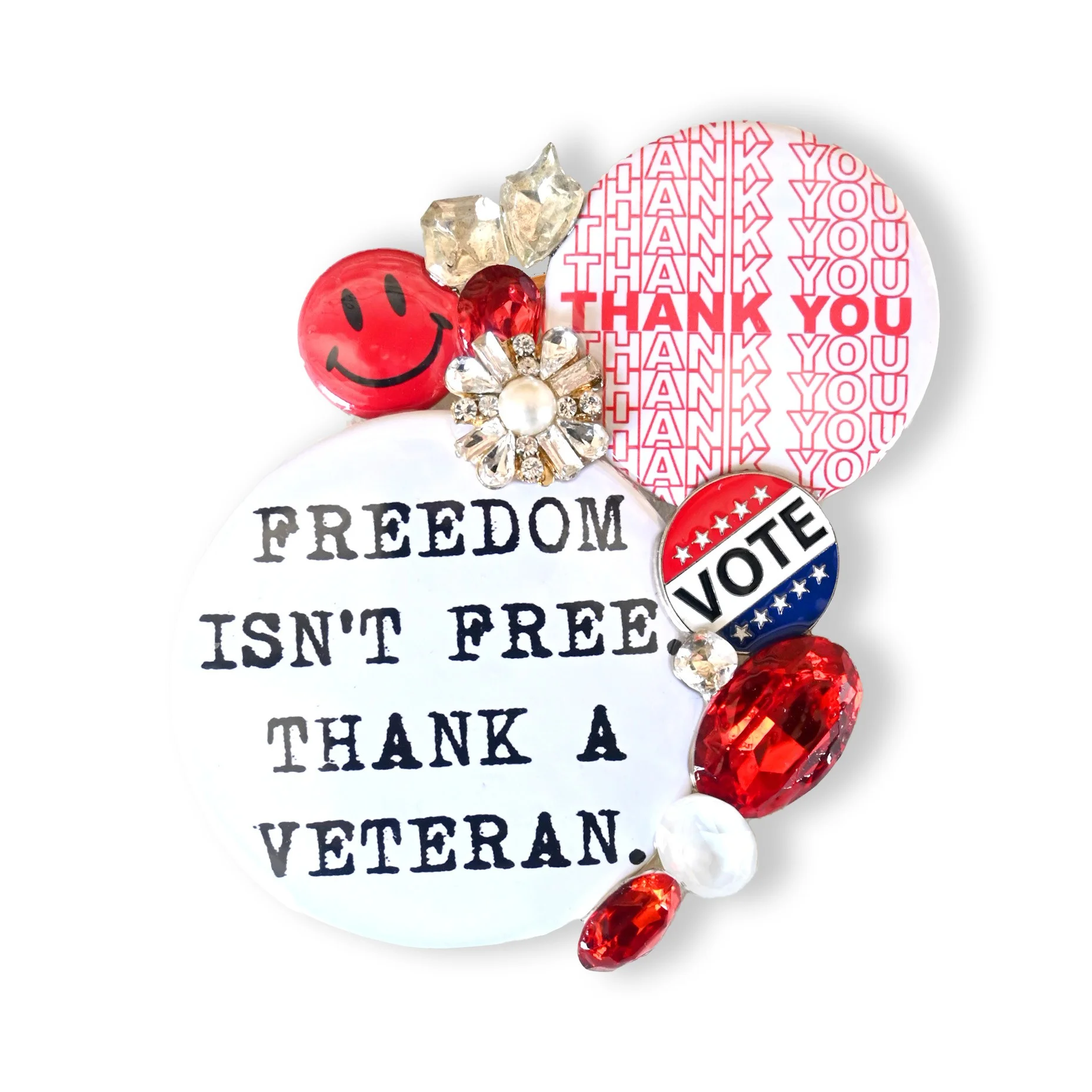 The social action pins are a newer collection that I embarked on a few years ago for my sculpture series Whiskey Rebellion—finding examples both at flea markets and online. And then my activist/artist friend Arleen Olshan and her wife Linda Slodki gifted me with their collection of 50 years of protest pins—hundreds of amazing pieces that I’m now incorporating into the new brooches!
