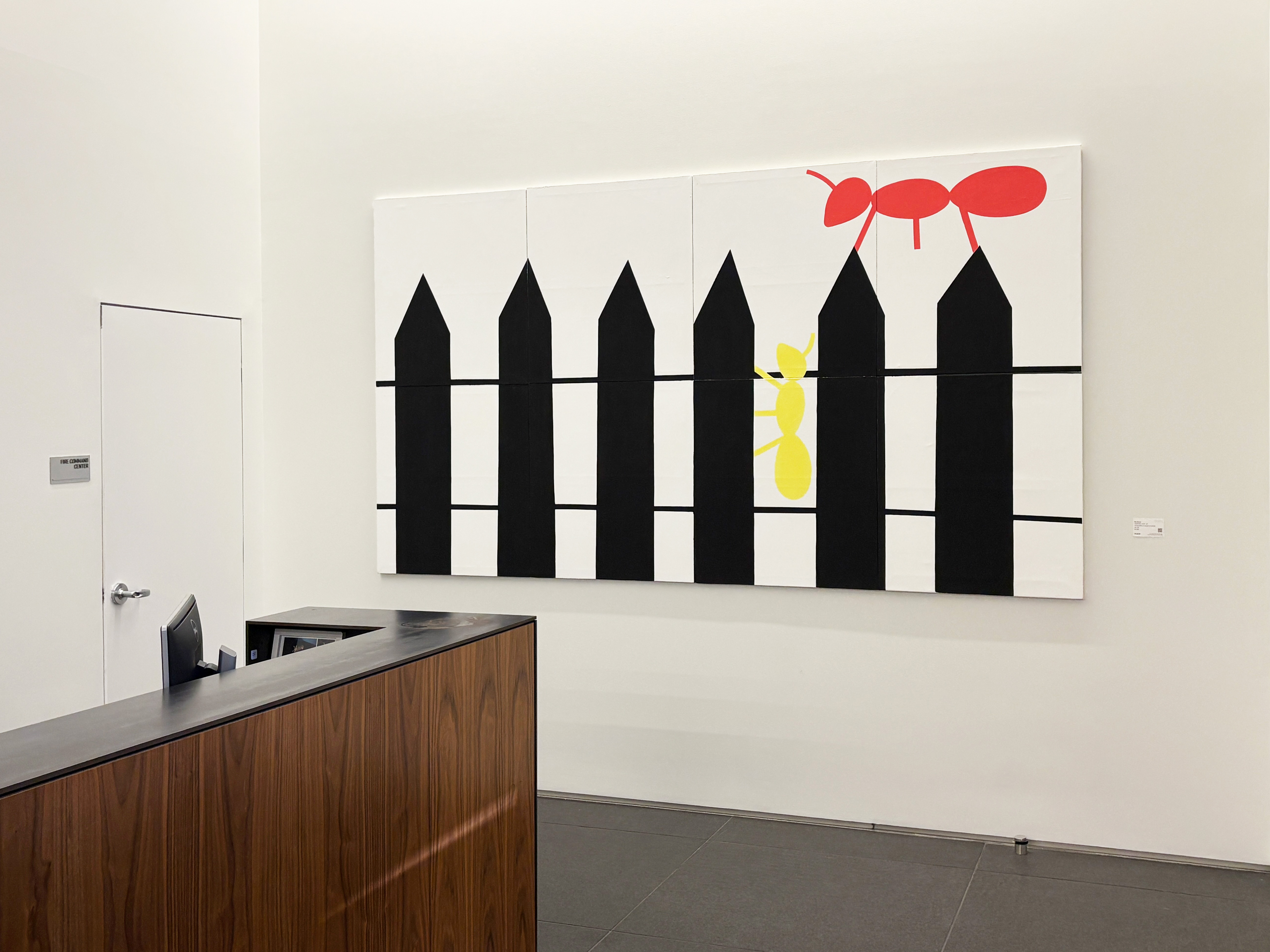Buy Shaver’s site-specific pieces are minimalist, often containing only a few phrases and a handful of colors. He reflects on how we might catalog our life experiences similarly to how presents are gift-wrapped, a meaningful object momentarily summarized by a colorful box. He begs us to consider: How can intricate subject matters be categorized into minimal selections of colors and shapes?